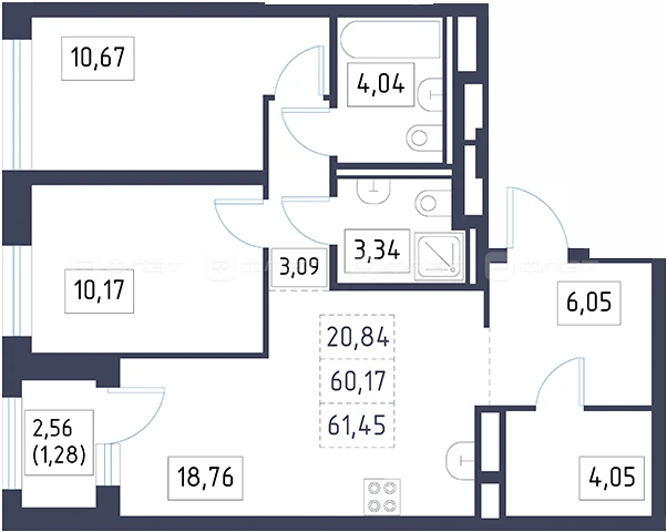 - 61.45/20.84/18.76 м²