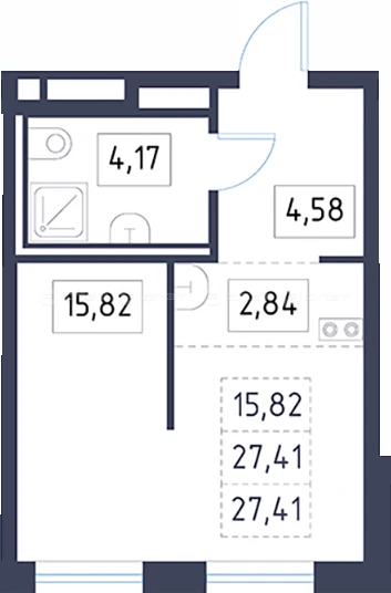 - 27.41/15.82/2.84 м²