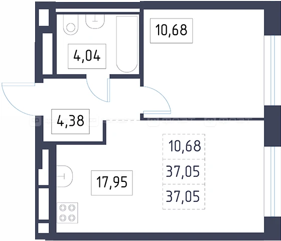 - 37.05/10.68/17.95 м²